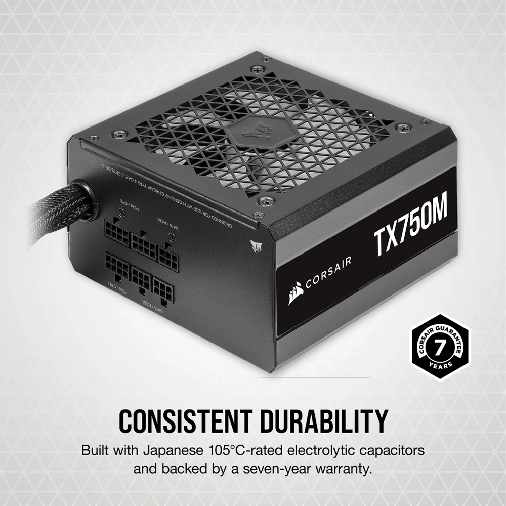 CORSAIR TX-M Series Low-Noise ATX Power Supplies offer the flexibility of semi-modular cabling and low-noise operation with 80 PLUS Gold efficiency certification and Japanese capacitors.