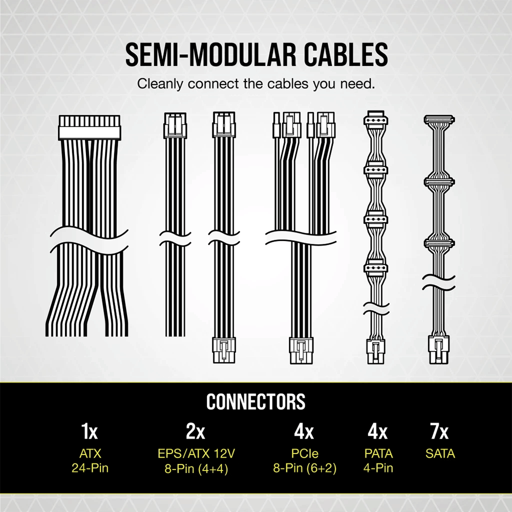 Connect only the cables you need for a cleaner build with easy cable management and dual EPS12V connections for wide compatibility with modern graphics cards and motherboards.