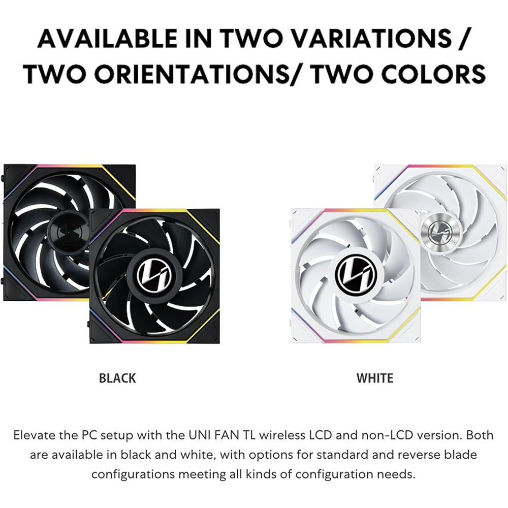 - The UNI FAN TL Wireless and TL LCD Wireless feature LIAN LI’s innovative wireless sync technology, utilizing a 2.4GHz wireless signal to control lighting effects and fan speed to further improve the PC building experience while delivering efficient cooling, dazzling lighting, and quiet operation.