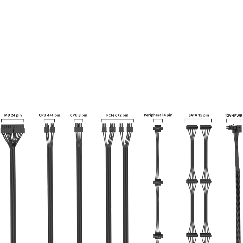 • Includes ATX 3.0 support and a 90-degree 12+4pin (12VHPWR) PCIe 5.0 connector featuring higher electrical durability, lower temperatures, and improved safety.