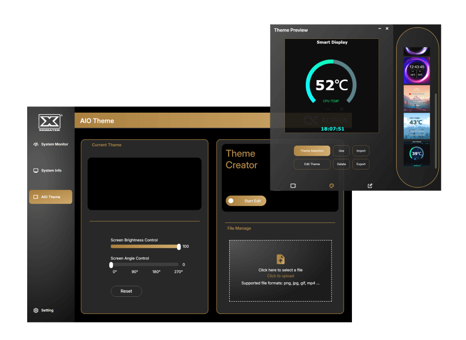 - Adjustable Screen Angle and Brightness, with Themes Offering Distinct Visuals and Layouts for Hardware Monitoring