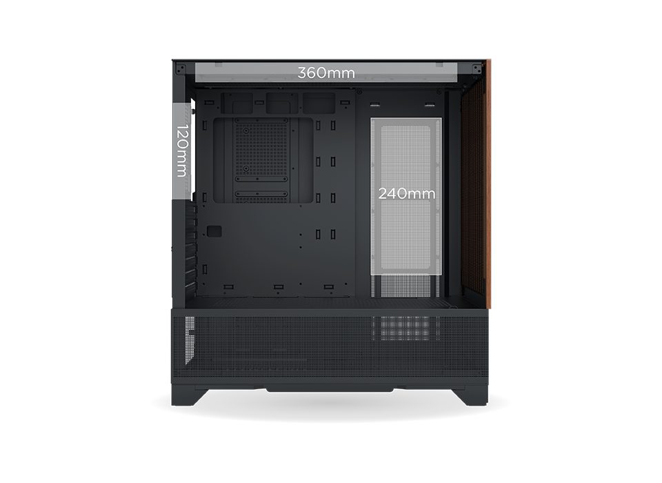 - Motherboard Side: 3 × 120mm (ATX MB Only)